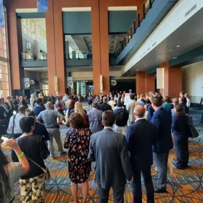 Op het programma van vandaag stonden meetings met twee toonaangevende Amerikaanse energiebedrijven: Avangrid en Dominion Energy. Daarnaast hebben we ook onze stand opgezet op de beurs. Al zeggen we het zelf, het eindresultaat mag er best wezen. Verder was er nog een verwelkoming in de beurshal, en ten slotte trakteerde Dominio Energy ons nog op een welkomstreceptie in de buitenlucht op Kanawha Plaza.