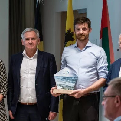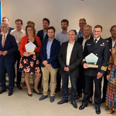 Inspirerende projecten in de blauwe economie werden in de schijnwerpers geplaatst tijdens de tweede editie van de Blue Innovation Awards. De winnende projecten waren: Leveraging AI for carbon-neutral shipping (Toqua); MANTA-line (Bexco); MPVAqua (Tractebel, Jan De Nul, DEME, Soltech en UGent); Port of Antwerp: The Echodrone & more (haven van Antwerpen) en A triple helix approach for innovation in the Belgian Navy (Belgische Marine).