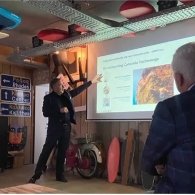 - Marc Huygens, Environmental Manager bij DEME, staat in voor de aanleg van de havendam in Blankenberge en lichtte het concept van de ecovriendelijke materialen en biologische monitoring toe.