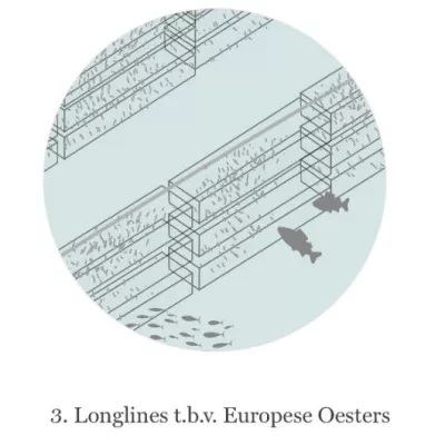 - Longlines met oestermanden voor de Europese platte oester om de groei van oesterriffen een handje te helpen;