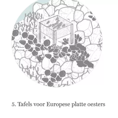 - Oestertafels op het stenentapijt ter hoogte van de hoeken en de longlines om de totstandkoming van oesterriffen extra te ondersteunen;
