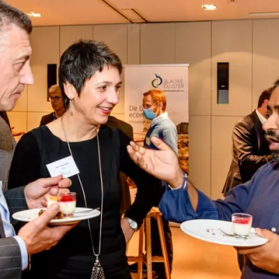 Na een hartelijke ontvangst en een warme verwelkoming door Bart Huybrechts (Managing Director MCA) en Ann Overmeire (COO De Blauwe Cluster) konden de aanwezigen de uitreiking van de Blue Innovation Awards in Dubai live meevolgen en meestemmen voor de Inspirational Blue Wave-award.