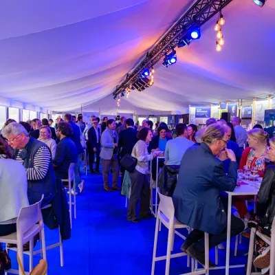 Aansluitend begaf iedereen zich naar de Haddock-lounge, de VIP-tent van Oostende voor Anker, om in een gepaste sfeer het vijfjarig jubileum van De Blauwe Cluster te vieren.
